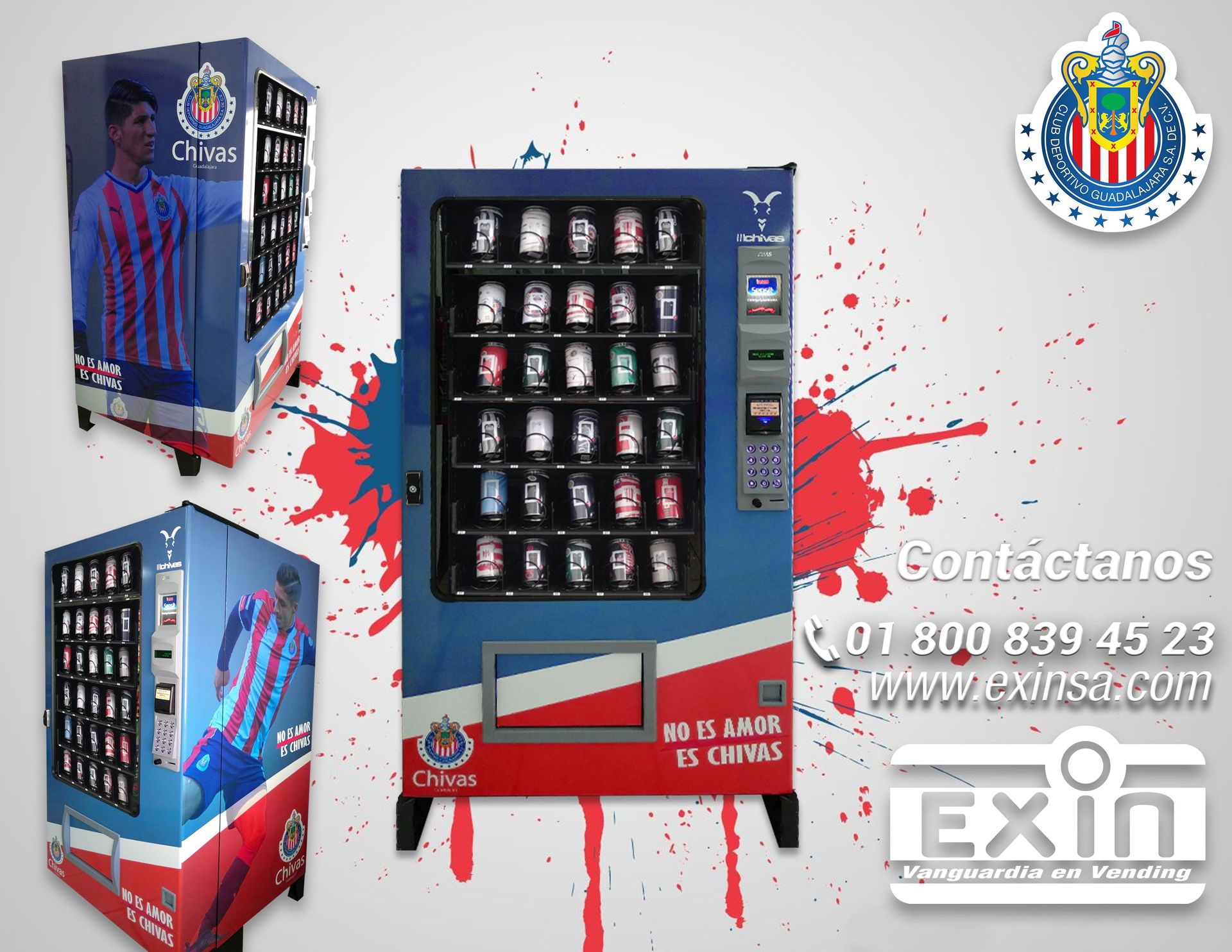 Se utilizó una máquina Snack 39'' con configuración especial, rótulo con imagen de las chivas.